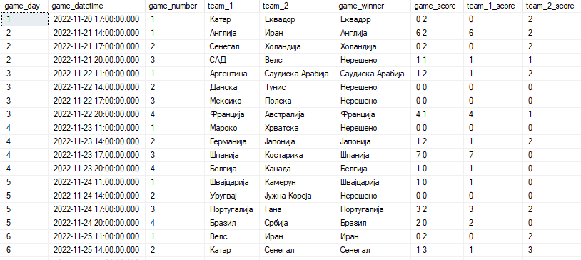 Тука на сцена стапи Евгенија, Data Architect во Data Masters, чија новооткриена пасија за следење на фудбал и погодување на точни резултати ги засени сите досега стандардни погодувачи. Нејзиното „знам, ќе направам база“, поврзувајќи го спортскиот со работниот интерес е и всушност зошто постои овој блог. Одлучивме дека ова е одлична идеја: резултатите може да одат во база и да се внесат во табели, за понатаму да можат да се анализираат, создавајќи еден скромен по големина датасет. Покрај забавата, сфативме дека ова е одличен начин да промовираме еден дел од нашата работа.