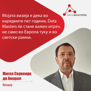 Од октомври годинава, Мигел го засили тимот на Data Masters на позиција менаџер, со тоа станувајќи првото интернационално засилување од Португалија на компанијата, а ќе биде одговорен за развој на одделот за финансии и банкарство. Прочитајте го интервјуто во кое тој зборува за своето искуство, мотивацијата да се придружи на Дата Мастерс и како ја гледа иднината на компанијата.